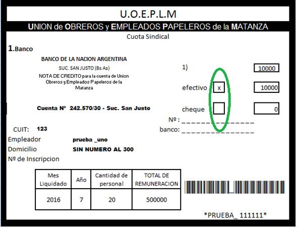 1.: De ser pago en cheque luego de marcar, completar Nro de chequee y banco